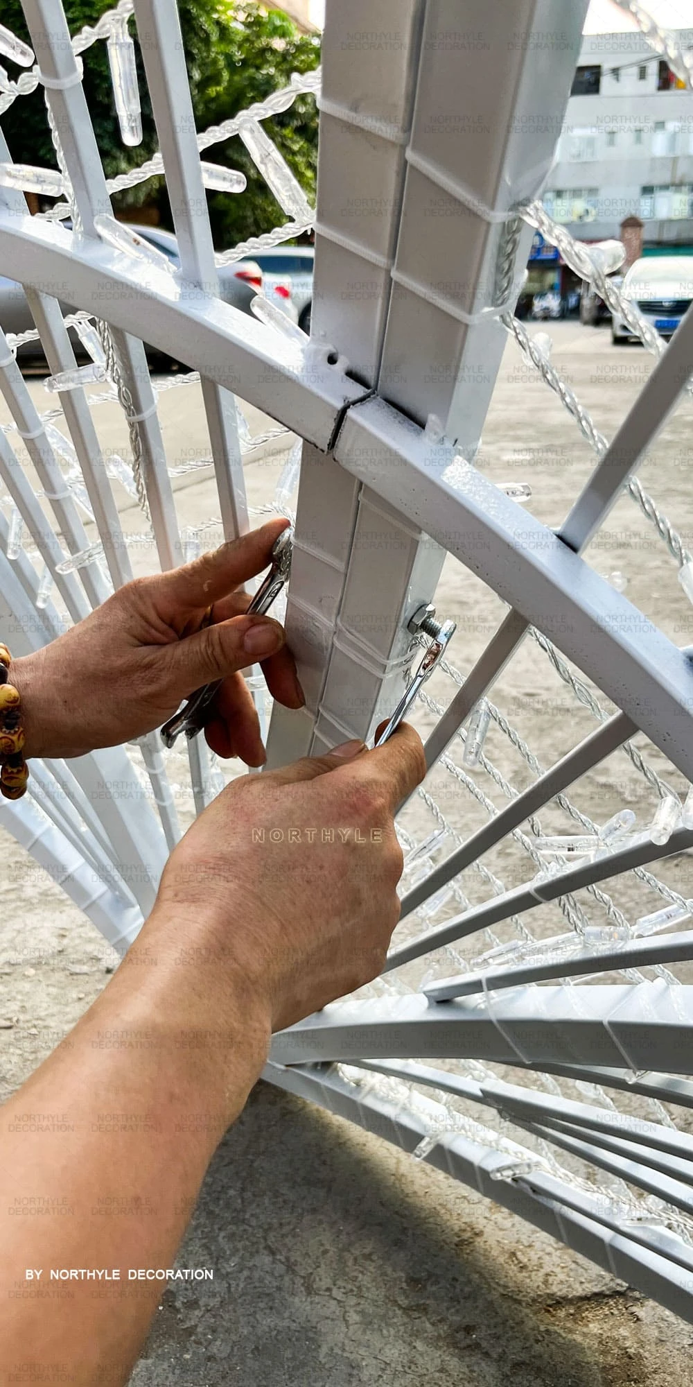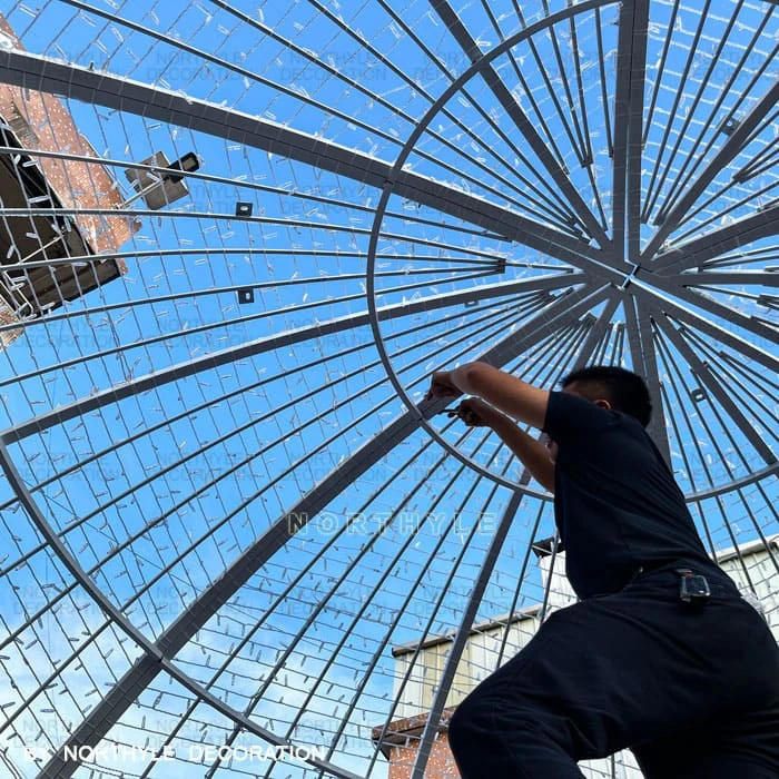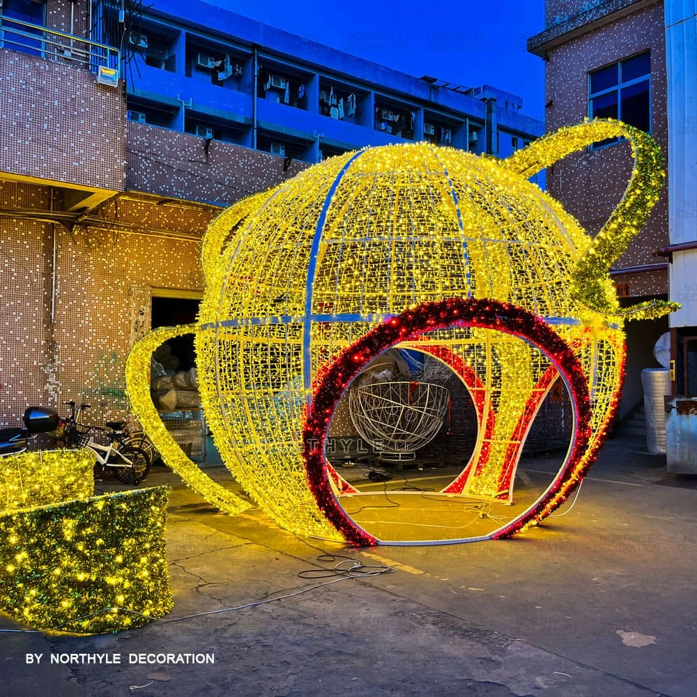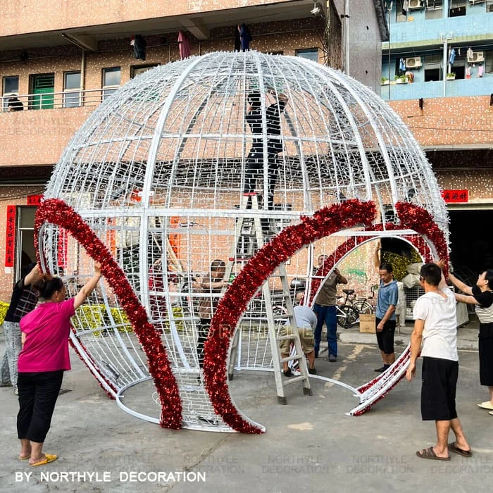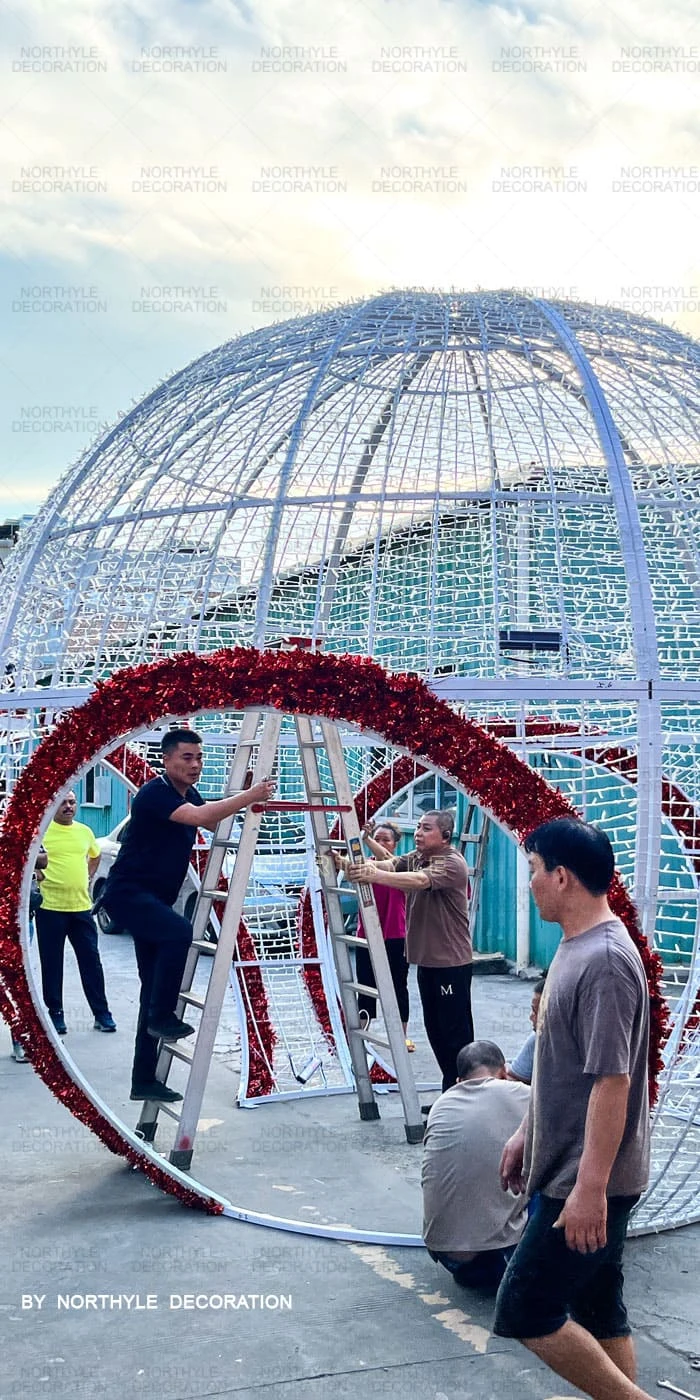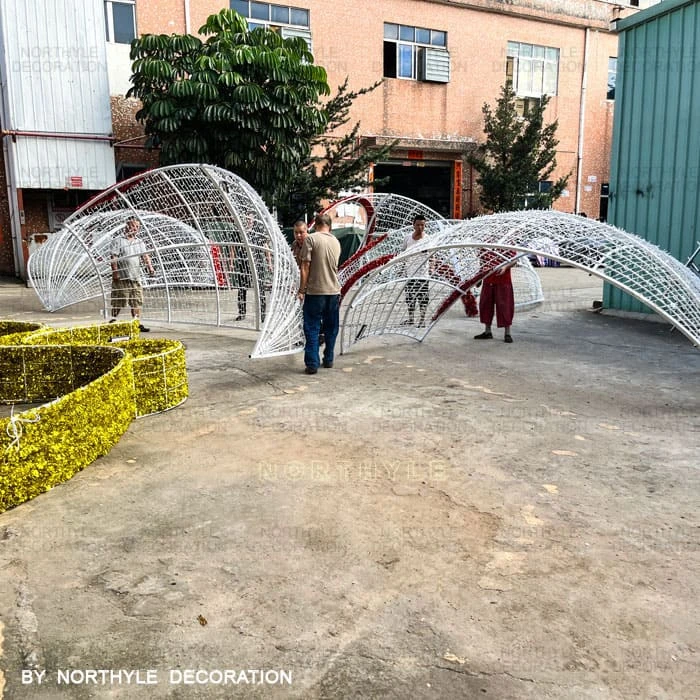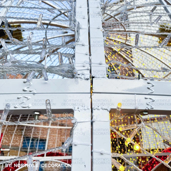 All Northyle christmas arch lights are engineered for straightforward on-site assembly. Large structures are manufactured in demountable sections for efficient shipping and reassembly — no specialist equipment required for standard models. Each unit includes a metal base for ground anchoring. Full installation guides are provided with every order, and our technical team is available to provide remote installation support. For large-scale city or plaza installations, we can advise on anchoring, cable management, and power supply configuration.
